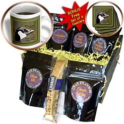 Goose Goose Duck Duck Coffee Gift Basket is measuring 9x9x4. Contains 15oz mug, BONUS free set of 4 coasters, biscotti and 5 blends of gourmet coffee. French Vanilla, Kenya AA, Decaf Colombian Supremo, Chocolate and Italian Roast Espresso elegantly presented in our signature black planet coffee gift box. A very nice and thoughtful gift for any occasion..../ SmudgeArt Photography Art Designs - Goose Goose Duck Duck - Coffee Gift Baskets - Coffee Gift Basket / CHOCOLATE DUCK